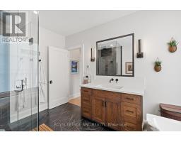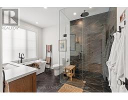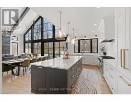 Welcome to 1 Briarfield Crescent - a custom-built estate quietly positioned at the end of a prestigious crescent in Glenridge's coveted Brock Bench enclave. Set on a massive pie shaped lot backing onto protected ravine and forest, this property offers rare privacy with no rear neighbours in one of Niagara's most exclusive settings. Built four years ago with uncompromising attention to detail, this two-storey residence balances architectural drama with refined functionality. The soaring two-storey great room is framed by a striking wall of glass overlooking tranquil forest, flooding the home with natural light. The chef's kitchen is designed for elevated entertaining, featuring a Thermador range and dishwasher, expansive 10-foot island, 4-foot Galley sink system with premium attachments, 80-bottle wine fridge, and a custom walk-in butler's pantry. The main-floor primary suite offers private patio access, spa-inspired ensuite, and separate his-and-hers closets. Electric dual blinds (sheer and blackout) provide effortless comfort throughout. Upstairs are four spacious bedrooms and two intelligently designed bathrooms with separated sink and water closet areas for practical family living. Ten-foot ceilings on the main floor and basement, and nine-foot ceilings upstairs, enhance the home's scale. The partially finished basement includes a two-piece bath with rough-in for a future shower. Sliding doors open to an expansive deck with glass railings, covered lounge area, BBQ space, and gas fire pit - all overlooking protected ravine views. Walkable to St. Peter Catholic School and minutes to Brock University, this is a rare opportunity to own a statement property offering privacy, architectural presence, and move-in-ready luxury without the wait to build. (id:41589)