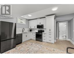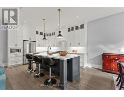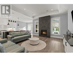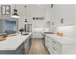 This luxury custom-built 2580 sqft bungalow offers exceptional craftsmanship, elegant design, and highly functional multi-generational living spaces throughout. Fully finished basement makes it nearly 5000 sqft finished! Designed with versatility and comfort in mind, the home features three complete kitchens each finished with custom cabinetry, quartz countertops, premium appliances (two gas ranges and one electric), three refrigerators, three dishwashers, and built-in microwaves-perfect for hosting large gatherings or offering private, independent living for extended family members. The main level showcases 12-foot coffered ceilings, engineered hardwood flooring, custom roller blinds, and beautifully appointed living areas highlighted by two gas fireplaces. For added everyday comfort, the home includes heated tile floors in three bathrooms and the lower-level kitchen. A self-contained 1-bedroom granny suite with its own entrance and dedicated parking provides privacy and flexibility, while the fully finished lower level includes two additional bedrooms, a full bathroom, a walk-out, and a spacious walk-in fruit cellar. The property features two full laundry rooms, each equipped with washer, dryer, laundry tub, and storage. Additional upgrades include Russound integrated sound and satellite wiring, a full security camera and alarm system with monitoring option, and an in-ground sprinkler system for effortless exterior upkeep. The home is fully fenced, professionally landscaped with thoughtful rock and garden design, and includes a covered outdoor porch to enjoy peaceful surroundings in every season. Every detail - from cabinetry to ceiling design to layout functionality - reflects the care put into creating a home that is both luxurious and deeply livable. This is a rare offering that combines elevated finishes, spacious design, and true multi-use living under one roof, providing comfort, privacy, and long-term value for its next owner. (id:41589)