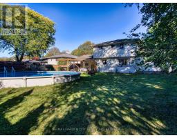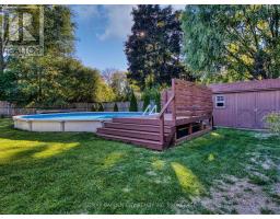 Desired Rolling Acres area. Walk to your choice of schools, park, minutes to the QEW for the commuter and all amenities. Solid, spotless, 3+1 bedroom brick family home with attached double car garage and paved, double private driveway. Fully fenced, large backyard with covered concrete patio/BBQ area overlooking the sunken above ground pool and deck. Garden shed, landscaped. Covered tiled front porch entryway to foyer. Great floor plan with oversized, bright replacement windows throughout. Inviting hardwood floored living room with gas fireplace, large, formal dining room. Open concept dinette, kitchen with walkout to backyard. Redone 3 piece bathroom with spacious walk-in shower plus a newer 4 piece bathroom upstairs. 3 bedrooms and a walk-in pantry. Comfortable, cozy rec room, high ceilings and pot lights. 4th bedroom, laundry room, storage room, 8 year new FAG furnace and CA unit. 200-amp breakers having enough power for that backyard hot tub you've always dreamed of. Start or move your family into a neighbourhood where you can leave your doors unlocked! This is it! (id:41589)
