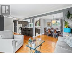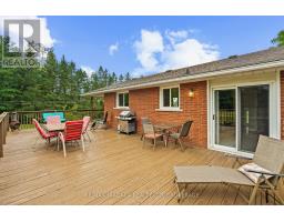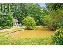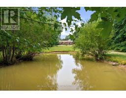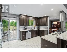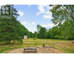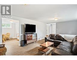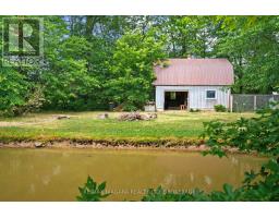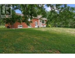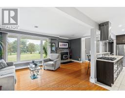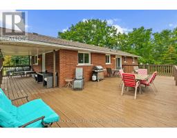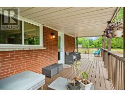 Escape to the country with this stylishly updated all-brick bi-level home on six acres, complete with a pond, wooded trails, and a wrap-around deck with covered section for year-round outdoor living. The garage has been partially converted into a mudroom/workshop but can easily be returned back to a double garage. At the heart of the home is a sleek, fully renovated modern kitchen with quartz island, breakfast bar, gas cooktop, and secondary sink. Designed for entertaining, it flows into a sunlit living room with wood-burning fireplace. Bright and airy natural light fills the home, enhancing the open-concept design. The finished lower level offers an L-shaped rec room with gas fireplace, an updated three-piece bath, laundry, cold cellar, and flexible space for a guest bedroom or office - perfect for extended family or a potential in-law suite. Outbuildings include a large shed and steel barn, providing plenty of room for hobby farming or extra storage. Conveniently close to city amenities yet surrounded by a serene countryside setting, this property offers the perfect balance of modern comfort and rural retreat. (id:41589)