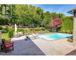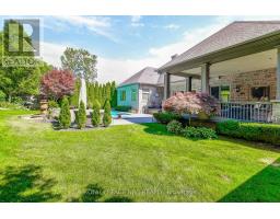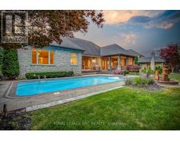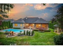Prepare to be amazed the moment you step through the grand, upgraded solid mahogany door of this remarkable open-concept bungalow. Nestled on a tranquil cul-de-sac in Niagara's prestigious Calaguiro Estates, this 2,740 square foot home exemplifies luxury living with premium finishes, meticulous craftsmanship, and professionally landscaped grounds with an irrigation system. Designed for culinary excellence, the gourmet chef's kitchen is paired with a dedicated prep kitchen, offering unparalleled functionality for those who love to cook and entertain. The expansive living and dining area is adorned with an impressive stone gas fireplace, striking 26-inch crown mouldings, and oversized sliding patio doors that open to a secluded backyard retreat. Here, you'll find a heated saltwater pool and a stunning portico, an idyllic setting for outdoor gatherings and relaxation. The luxurious primary bedroom boasts a custom walk-in closet and a spa-inspired five-piece ensuite finished with elegant travertine and hardwood flooring (under the carpet). An additional bedroom, main floor laundry, central vacuum system, and a hidden loft room provide extra space, comfort, and convenience for everyday living. Downstairs, discover a media room, exercise room, and office, most basking in natural light from oversized windows. The lower level also offers the potential for a complete in-law suite, featuring a spacious five-piece ensuite bathroom and a private entrance, making it ideal for guests or extended family. Completing this extraordinary residence is a triple attached garage, seamlessly blending functionality and style for the ultimate in refined living. Pre-Inspection report just completed. (id:41589)