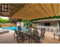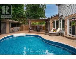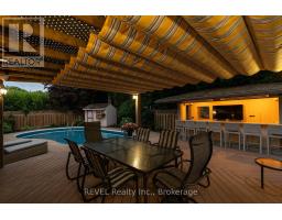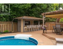 Experience the ultimate in entertainment living at 78 Sovereign Drive. Nestled in the coveted south end Glenridge neighborhood of St. Catharines. This exceptional property features an inviting in-ground pool, an unparalleled cabana pool bar; featuring heaters, automatic shutters, two kegerators, wine and soda fridges, an ice bucket, speakers, granite counters, and a liquor dispenser. A covered dining area with an awning, a putting green in the side yard, a sunroom, an oversized kitchen island, a wine cellar, and a fitness room amenities that will make your home the envy of all your friends and family. This 5-bedroom family home is filled with custom details and boasts a unique open concept layout. As you enter, you're greeted by an open staircase, the dining room with a vaulted ceiling, a spacious chef's kitchen, a sunken living room with a wood-burning fireplace, and a one-of-a-kind kitchen island and bar area create a welcoming atmosphere. The sunroom addition with its vaulted ceiling and skylights provides seamless access to the stunning backyard. On the main floor, you'll find convenient access to the attached 2-car garage, a laundry room, and a powder room. Upstairs, the home continues to impress with California shutters, wainscoting, skylights, four spacious bedrooms, a 4-piece bath, and a primary suite featuring a walk-in closet, a 5-piece jetted tub ensuite and a gas fireplace. The lower level of this naturally bright home is designed for entertainment and relaxation, featuring a wine cellar, a recreation room, a games area, a gym, and a guest bedroom with an ensuite boasting heated tile floors, an oversized shower, and a raindrop shower head. Located just down the hill from Brock University, shopping, amenities and a short drive to the St. Catharines Golf & Country Club, this home offers both luxury and convenience. (id:41589)