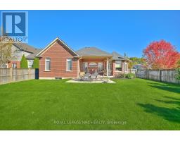SET UP NICE!! Built by Mabo Westside Construction Ltd., this former Linden model bungalow offers timeless quality, elegant design, and beautiful curb appeal with its combination of brick, stone, and stucco finishes.Featuring an oversized double garage and an impressive 1,200 () sq. ft. covered patio accessible from both the kitchen dinette and the primary bedroom-perfect for entertaining family and friends or simply enjoying a peaceful evening under the stars.With just shy of 2,300 sq. ft. above grade plus approximately 1,000 sq. ft. of finished space below, this home offers versatility and comfort for today's lifestyle.Step inside to soaring 9- and 10-foot ceilings, a welcoming foyer with striking curved wall and wrought-iron railing, and a spacious Great Room featuring a detailed cove ceiling, pot lighting, a centre gas fireplace, and immaculate maple hardwood floors.The chef's kitchen boasts quartz countertops, a tumbled marble backsplash, and a bright dinette overlooking the fully fenced backyard. A formal dining room sets the stage for special gatherings, while a front flex room easily serves as a home office, den, or extra bedroom.Down the hall, discover another generous bedroom, a full 4-piece bath, and the primary retreat tucked privately at the back of the home with a 4-piece ensuite featuring a walk-in glass shower. Main-floor laundry with garage access adds convenience.Downstairs, take the party to the fully finished lower level with in-floor heating, a wet bar with seating for four, a corner gas fireplace, and a projector with automatic 92" screen and 8 built-in speakers-the ultimate entertainment space! A fourth bedroom, 3-piece bath, and three large storage rooms complete this impressive lower level.Rounded corners, quality finishes, and attention to detail throughout make this home truly special-set in one of Fonthill's most desirable neighbourhoods.Who will be the lucky one? (id:41589)